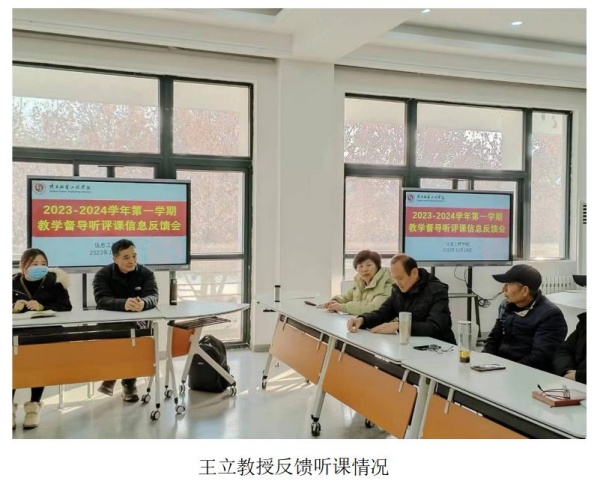 为更好的抓好教学质量,促进教师教学改革,提高公司产品水平,全面提升教师基本素养,促进教师不断成长,7790cnm必发集团于2023年12月19日14:30在A208智慧教室召开2023-2024学年第一学期教学督导听评课信息反馈会。7790cnm必发集团教学督导组组长周明贵、督导组成员、各系主任、教师代表参会,会议由教学秘书侯曼曼老师主持。