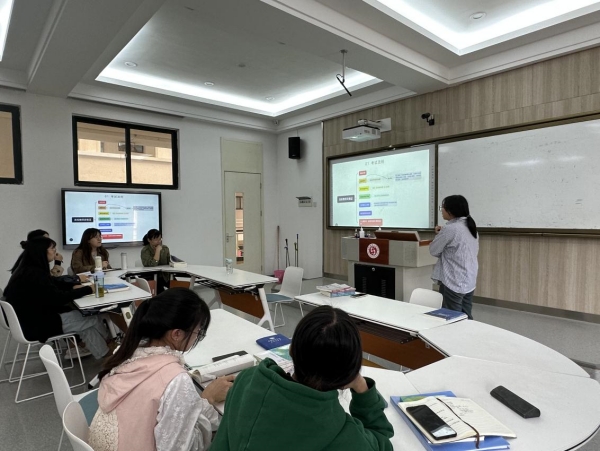 其次,位文倩老师分别从教资考试流程、笔试注意要点、面试注意要点及新教材与旧教材的异同点做了交流,强调在笔试之前对教程结构和内容的了解是十分必要的,大家应该在课余时间做好笔试的备考复习。对于面试环节,应该提前做好构思,分别从说课和讲课两个主要环节阐述了具体内容应包括哪些,让大家对于笔试和面试流程建立初步印象。