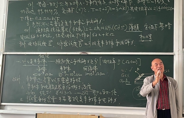 接下来,柴教授结合40年的教学经历与体会,采用全板书授课方式进行“半导体物理学”第一次课程内容的示范性讲授,与大家分享纯板书教学方式在大学本科专业课程教学中的地位与作用;现场交流教学方法、教学研究、科学研究、论文发表等方面的体会。