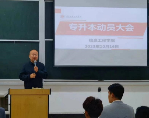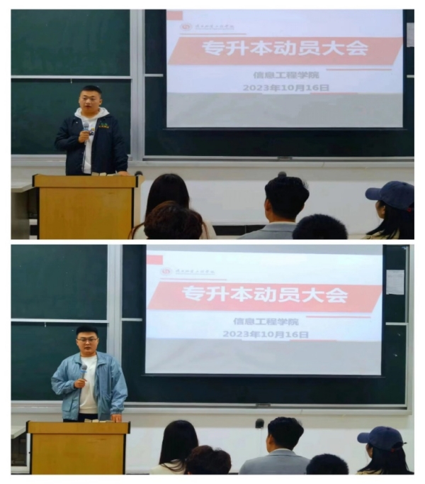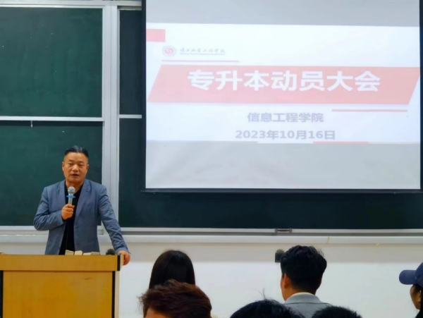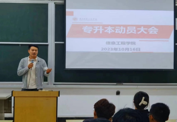 根据员工学风建设月活动方案,为了帮助创新班和22级专科同学了解专升本最新动态、掌握学习方法,抢占专升本先机,7790cnm必发集团于2023年10月16日晚19:00在B509教室召开专升本宣传动员大会。本次会议由7790cnm必发集团员工第一党支部书记王蒙老师主持,7790cnm必发集团常利群副经理、学工办主任罗雄、各班级辅导员以及优秀专升本员工代表出席本次大会。