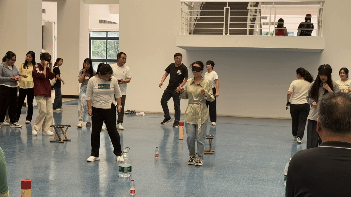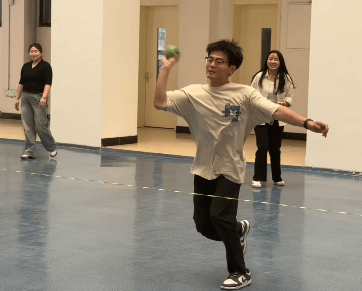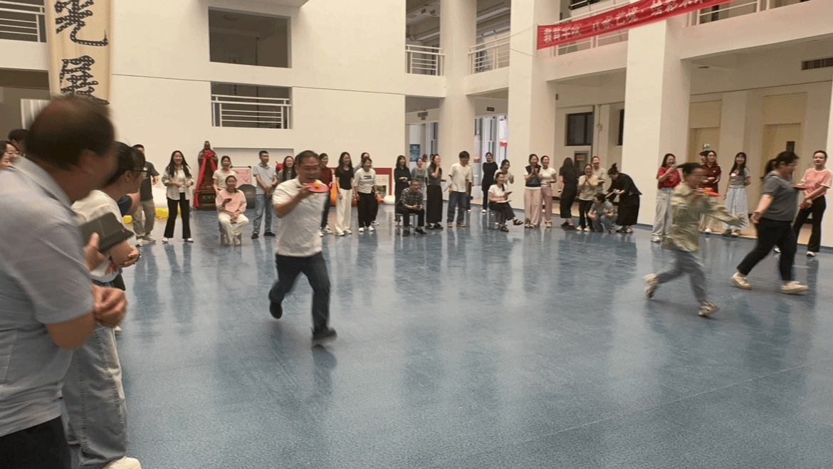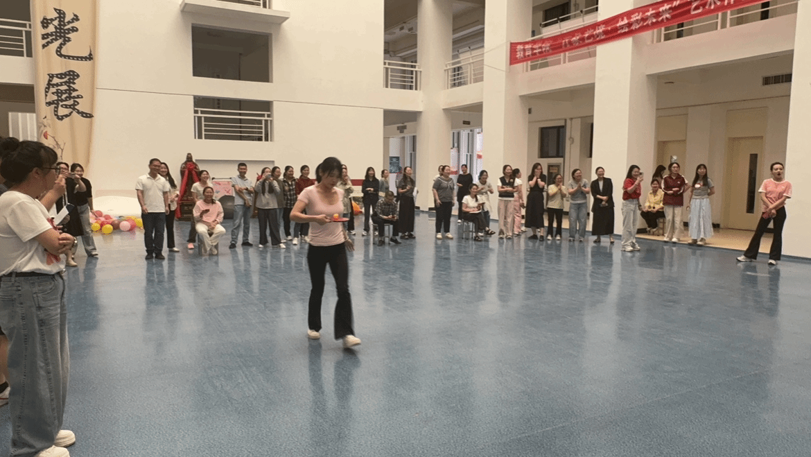 在仙人指路游戏环节,各系老师们两两一组,一人蒙上双眼,依靠同伴的指令穿越重重障碍后到达终点。现场指令声、欢笑声此起彼伏,考验着同事间的默契。托球跑游戏中,各队教职工们手持乒乓球拍,托着乒乓球奋力向前冲刺,力求速度与稳定兼得,气氛紧张而又刺激。丢沙包项目里,大家身手敏捷,灵活躲避攻击、奋力投掷,现场气氛热烈非凡。最后的踩气球环节将本次运动会推向高潮,教职工们既要保护自己脚上的气球不被他人踩破,又要想办法踩破他人的气球,你来我往,热闹异常。