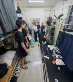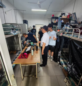 员工公寓检查组由李水泉、罗雄带队,全体辅导员参与,对违规使用大功率电器、私拉乱接电线等情况进行重点排查,同时对空调线路负荷、消防通道及环境卫生状况展开全面检查。