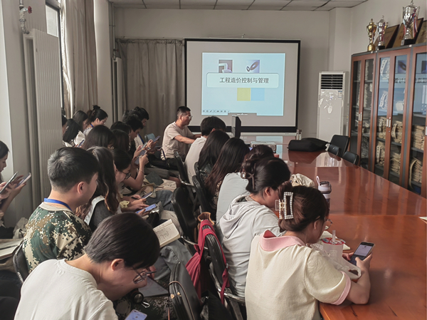 教师教学技能培训由公司计算机科学系戴静(负责:PPT,教学进度表、任务书)、电子信息系曹晓红(负责:教学设计方案)、工程造价系冯俊琪(负责:雨课堂)三位老师分别从教学方案设计、进度计划表的撰写、雨课堂软件教学应用等方面进行示范授课。