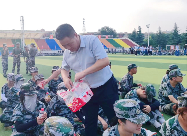 2023年9月6日下午,公司党小娟副经理、常利群副经理、办公室主任马杨林、员工团总支副书记崔燕、各系主任及新生辅导员前往军训场地慰问军训教官和员工。