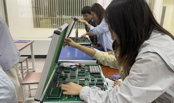 电子信息系教师也依次学习检查各系实验室设备状态,查看实验室布局、学习规范化建设要求,了解实验所承担的实验课程以及实验记录填写要求,练熟悉了设备规范操作,最后也对各实验室进行了安全隐患排查。