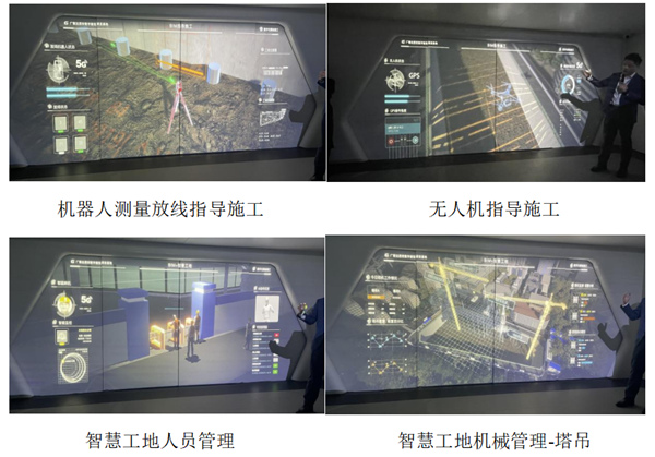 在施工阶段,实现设计施工一体化协同管理,有效实现工序搭接,管线综合碰撞检查,网页端实时查看数据,建设方、设计方、施工方、监理方实现同一平台办公。施工过程中采用BIM指导施工,使用防线机器人进行数字化精准放线,无人机检测施工状态进行数据传输。在智慧工地建设方面,对人、机、料、法、环进行数字化管理。