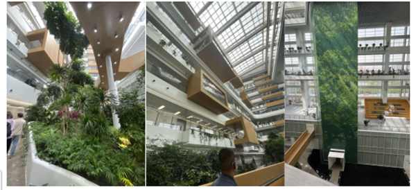 最后,此次数字化建设还应用到了整栋大厦的运维阶段,对光伏发电、太阳能热水系统和碳排放量实现能源管理,还监测了日常的环境指标,如温度、湿度、二氧化碳浓度等,以便于大厦启动相应设备使大厦内部环境适宜,数字驾驶舱对于多个系统进行联通打通整个大厦的运维,为方便人事管理设置有相应的工位管理,通过手机员工可以随时预约相应工位和会议室,为员工提供人性化服务,还设有智慧厕所、智慧跑道、员工服务大厅、睡眠舱、健康小屋等。