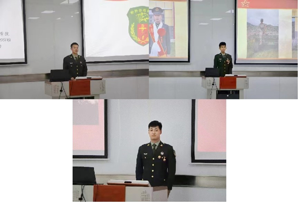退役士兵代表汪思力同学曾服役于中国人民解放军陆军驻天津某装甲旅,并参加过朱日和大阅兵,何昊龙曾服役于中国人民解放军陆军西藏军区某旅,王少飞曾服役于中国人民解放军陆军边海防某旅,三位退役老员工士兵代表依次上场作报告,向在场的员工分享各自的入伍初心、在部队的历练过程、回校的感受和争做表率的决心,结合真实经历讲述了国防建设的重大意义,并重点对退役后老员工的职业规划、考研考公优惠政策等同学们较为关心的问题进行了重点讲解。王少飞说,“首先感谢公司给我们一个这样的机会能够给全体同学分享一下自己在部队成长的过程,想成为一名军人,必须热爱中国共产党,热爱社会主义祖国,热爱人民,遵纪守法,品德优良,决心为抵抗侵略、保卫祖国、保卫人民而英勇奋斗”,在场的教师和同学均备受鼓舞。优秀退役士兵员工分别讲述了他们在部队服役期间的收获与感悟,用亲身经历给大家生动诠释了携笔从戎、保家卫国的重大意义,展现了不怕艰苦、勇担使命的新时代军人形象。