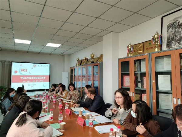 交流环节:艺术公司任晓莉副经理,基础部教学秘书师福荣,健康公司经理助理王孟,教育公司教学秘书均进行了交流发言,大家从命题、阅卷、试卷分析、系统录分、成绩管理等方面进行了讨论交流。