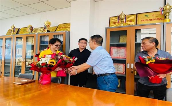 2022年9月8日下午14:00,在第38个教师节到来之际,董事长姜寿山、校工会吴亚红老师一行人代表公司和工会,前来公司院走访慰问工作二十年的老教师甘霖经理、刘康老师、李勇老师;同时慰问教职工刘冬和洪玮老师,为他们送上了鲜花,同时也向辛勤耕耘在教育工作一线的全体教师致以节日的祝福和诚挚的问候。