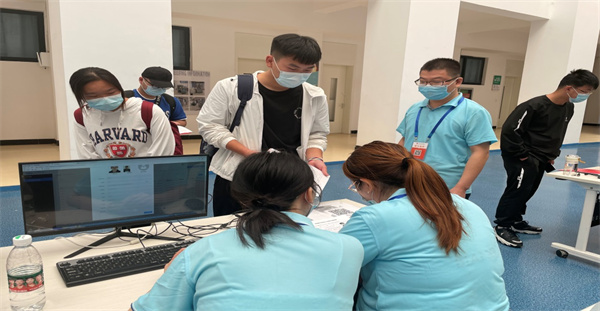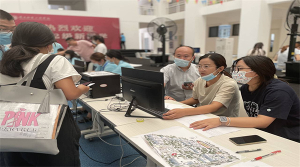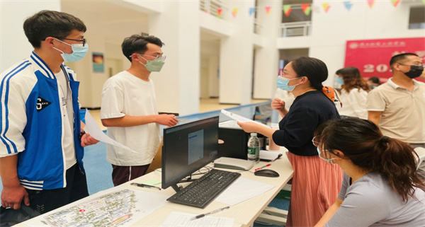 据悉,今年报考信工公司的新生们是历届报考人数最多的。面对繁重的接待压力和复杂的疫情形势,信工公司周密部署,精心组织,全员参与。负责迎新的老师们分工明确,各司其职的坚守在接待岗位。他们不畏天气炎热,以热情周到的服务迎接着每个新生。在接待现场,他们面带笑容、认真办理注册登记、宿舍分配等入学程序,同时耐心解答员工们提出的各种问题,帮助新生们完成入学的一切准备。刚刚入职的新教师杜培,在认真的做好注册的同时,为新生能顺利入住公寓忙前忙后。她认真工作、尽职尽责的精神和状态受到了校领导的肯定和表扬。