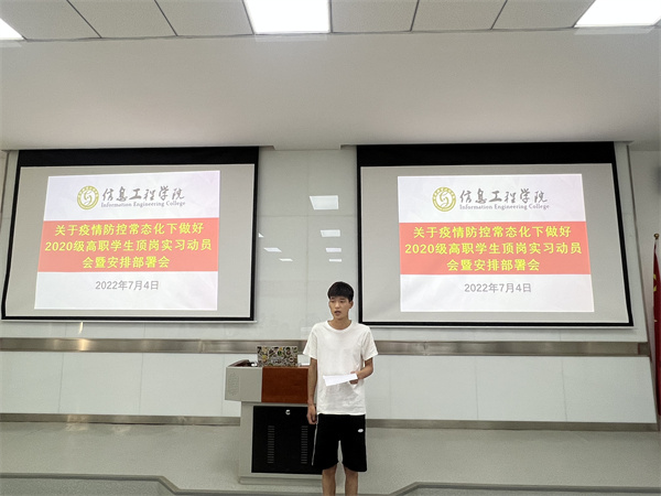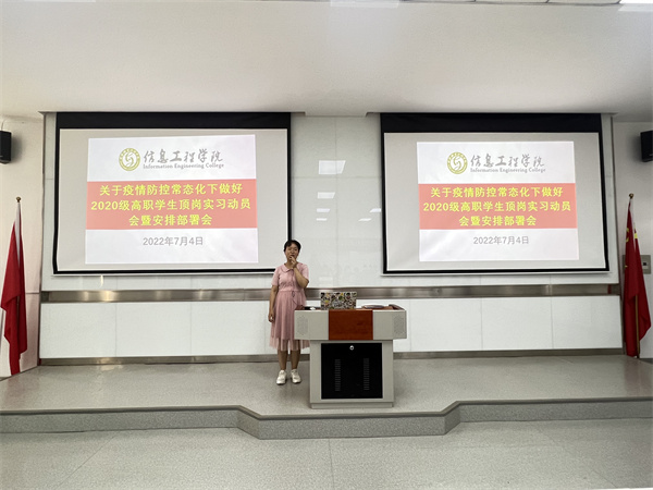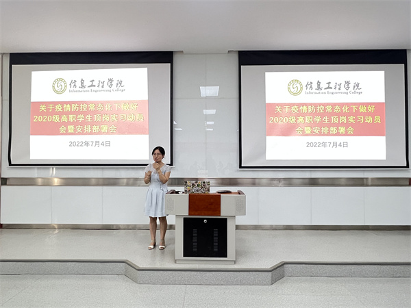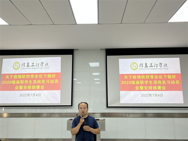 2022年7月4日下午,7790cnm必发集团召开关于疫情防控常态化下做好2020级高职员工顶岗实习动员会暨安排部署会,7790cnm必发集团学工办主任罗雄、计算机科学系系主任戴静、建筑工程系系主任杨欢以及2020级高职员工和辅导员参会,本次会议由实验室主任陈江萍主持。