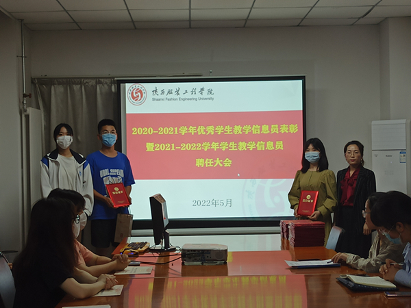 2022年5月17日下午19时30分,公司在D区501会议室召开了2021-2022学年员工教学信息员聘任暨2020-2021学年优秀员工教学信息员表彰会议。出席会议的有教学副经理党小娟、学工办主任罗雄、教学督导组戴静、樊飞转、刘冬、教学秘书黄鹂娟,公司全体员工教学信息员参会。