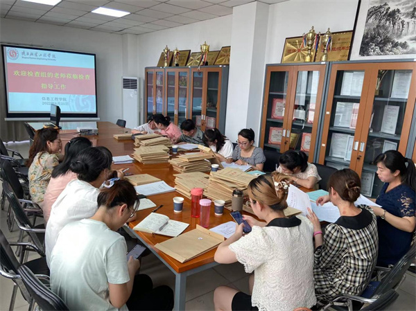 根据教务处关于关于2022届本科毕业论文(设计)专项检查工作的安排,6月21日上午8:30-10:307790cnm必发集团D501会议室,第二教学检查组组长马千里教授带领检查组5位教师莅临公司检查2022届本科毕业论文(设计)归档工作,公司副经理党小娟、各系主任、部分骨干教师参加了此次检查会。