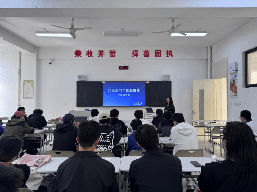 本次招聘会采取“企业展示+互动问答+现场投递”三段式流程。28日上午首场活动中,同炎数智科技有限公司代表围绕“数字孪生赋能新型工业化”主题,系统介绍了企业在智慧交通及智慧城市领域的技术优势与校招计划;29日下午第二场活动中,比亚迪汽车工业有限公司西安分公司企业代表通过视频短片和案例分享全面展示比亚迪“技术为王、创新为本”的核心战略及西安基地二期项目的人才需求。两位代表着重就同学们关心的工作环境、薪酬福利、职业发展路径等问题作了细致解答。现场气氛热烈有序。据统计,两场招聘会共收到10余份现场投递简历并通过初步筛选。