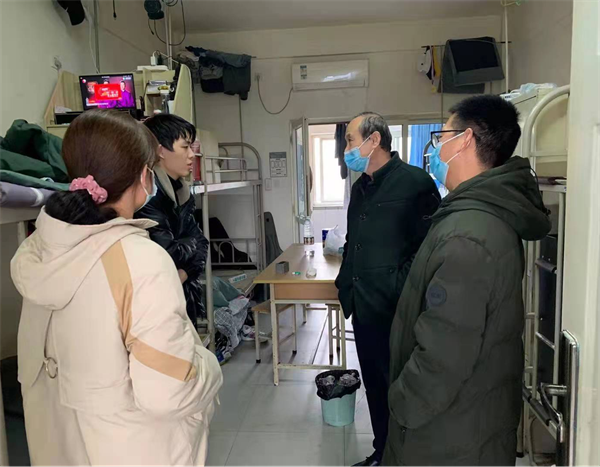 2022年1月21日上午10:20,信息工程公司党总支书记、执行经理甘霖组织除辅导员外的全院在校教职工前往员工公寓关心慰问公司在校的省外员工,全力配合学工部做好员工返乡工作。