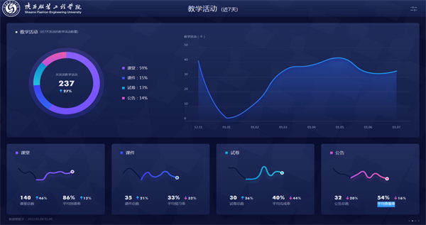 本阶段开课涉及43个教学班(本科22个教学班,专升本4个教学班,创新班7个教学班,专科10个教学班),共计1400多名员工,线上课程运行情况整体平稳有序。