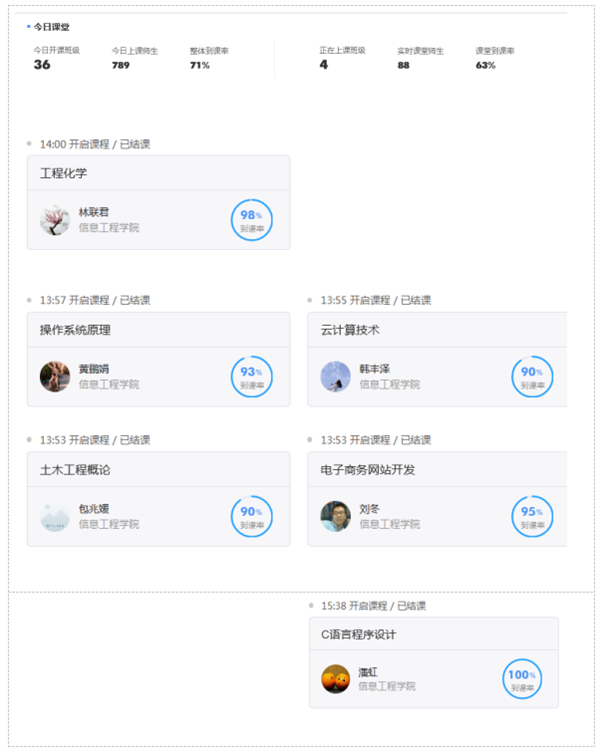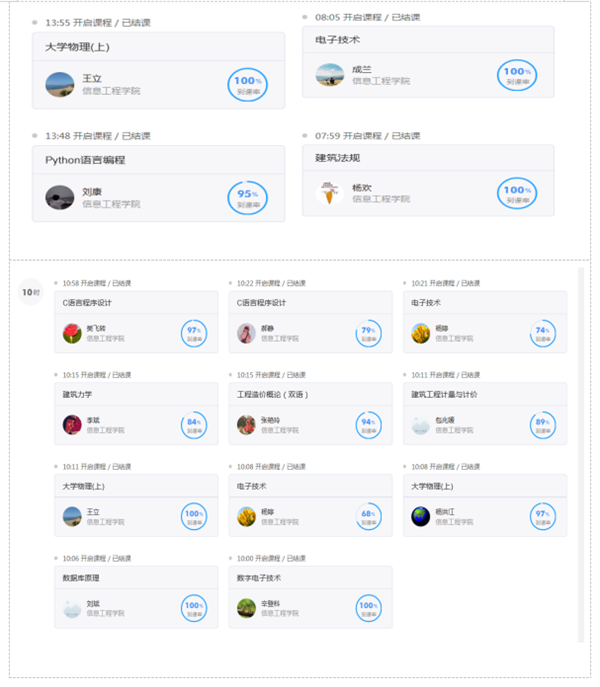 本阶段线上教学共覆盖专兼职教师38人,全体教师以“长江雨课堂”平台为主,借助“腾讯视频”、“QQ 群直播”等平台相结合开展线上教学,保证第二阶段的课程在前阶段的基础上,稳步提高教学质量。