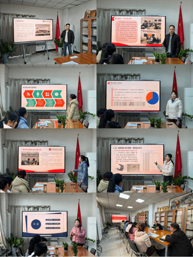 本次总结会系统梳理了学风建设月期间的各项工作。会上,七位辅导员依次进行了内容丰富、重点突出的专题汇报。刘力嘉老师首先就员工就业情况作了重点分析,为后续工作的精准施策提供了数据支持;王蒙老师围绕思想引领与党建工作,阐述了如 何以党建带动学风建设;刘西珍老师详细汇报了安全稳定底线工作与学业帮扶的具体举措;刘子瑊老师聚焦员工心理健康,强调了心理育人对学风建设的基础性作用;任甜甜老师介绍了学业规划指导的开展情况,引导员工明确学习目标;舒浪老师分享了“一对一”精准帮扶和“优秀学习笔记”评选等特色活动的显著成效;崔燕老师则就实习员工的安全管理问题进行了专项汇报,确保实践教学环节安全有序。
