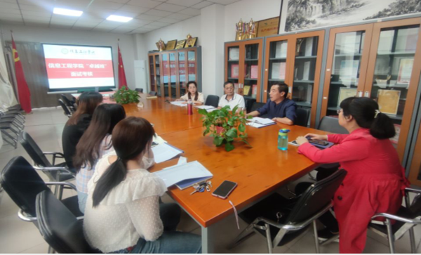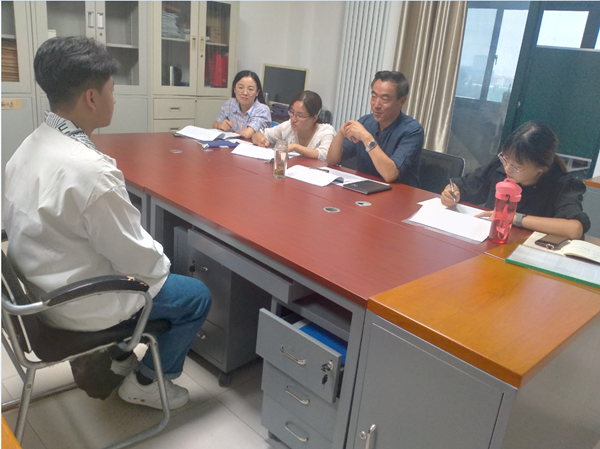第二面试组在D510办公室进行,主要针对的是2021级推选的40名本科生。机械设计制造及其自动化专业学科带头人周明贵教授、电子信息系系主任潘虹老师、建筑工程系系主任杨欢老师、教学秘书黄鹂娟老师参加了本组面试工作。