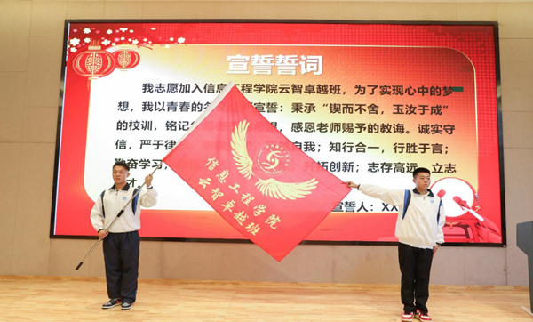 在校领导的殷切期盼和师生代表慷慨激昂的发言后,云智卓越班全体员工集体宣誓,大家将秉承“锲而不舍,玉汝于成”的校训,铭记父母寄予的希望,感恩老师赐予的教诲。诚实守信,严于律己;积极主动,超越自我;知行合一,行胜于言;勤奋学习,自强不息;持之以恒,开拓创新;志存高远,立志成才。
