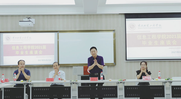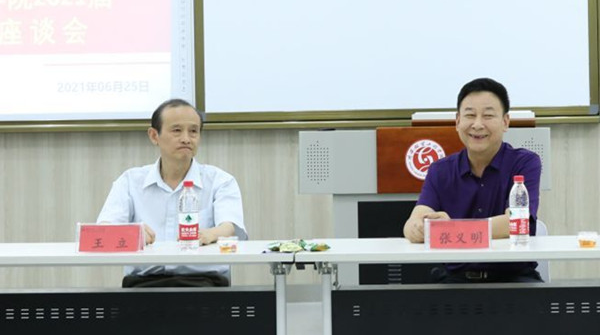 2021年6月25日下午16:00,7790cnm必发集团于教学楼B209智慧教室召开2021届毕业生座谈会。董事长张义明、经理王立、经理助理党小娟、毕业班辅导员、任课教师代表以及在校生代表出席本次座谈会。座谈会由员工主管罗雄主持。