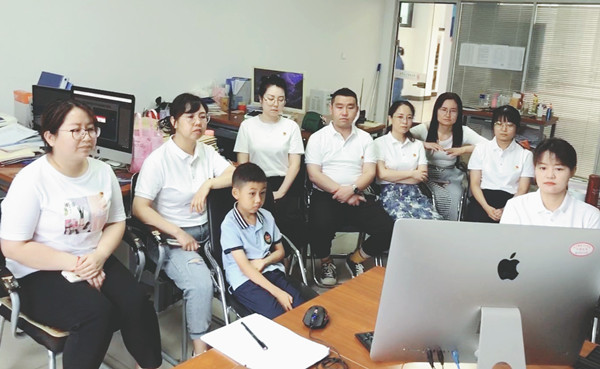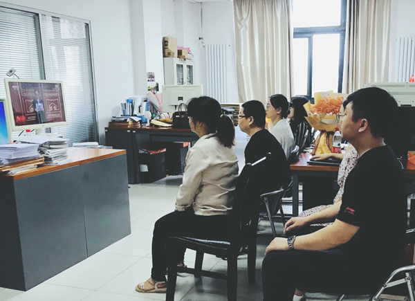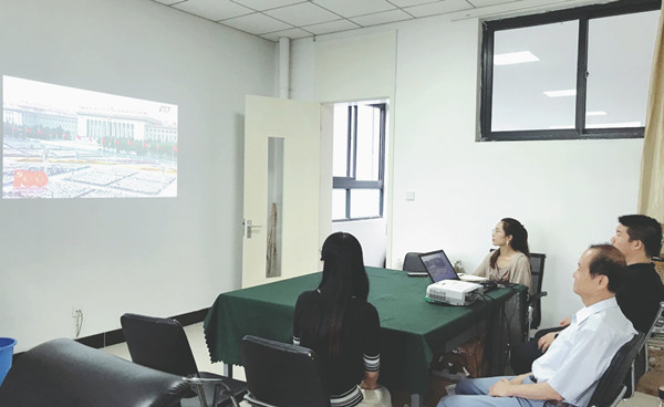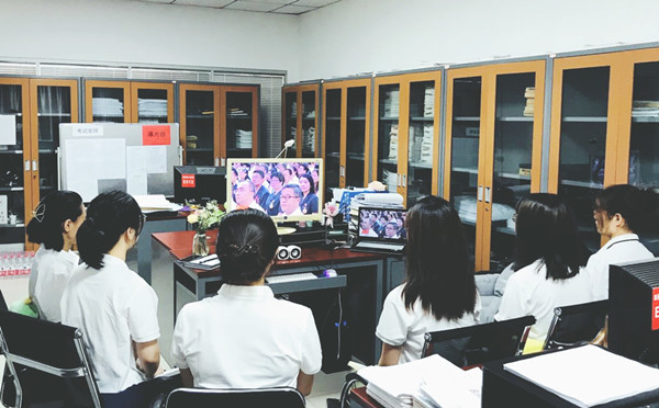 全体师生党员准时到达公司安排的各分会场,佩戴好党徽和纪念徽章,认真收看大会实况直播。