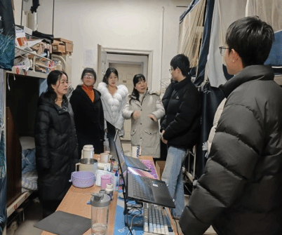 为切实做好寒假期间校园安全管理,深入了解员工期末状态,确保员工平安、文明离校,2026年1月12日下午,公司党委书记、经理李水泉带领公司领导班子及学工队伍,深入员工公寓,开展了全面的安全检查和期末慰问工作。教学副经理党小娟,实践教学副经理付向艳,党委副书记、学工办主任罗雄,各系主任及全体辅导员一同参与检查。
