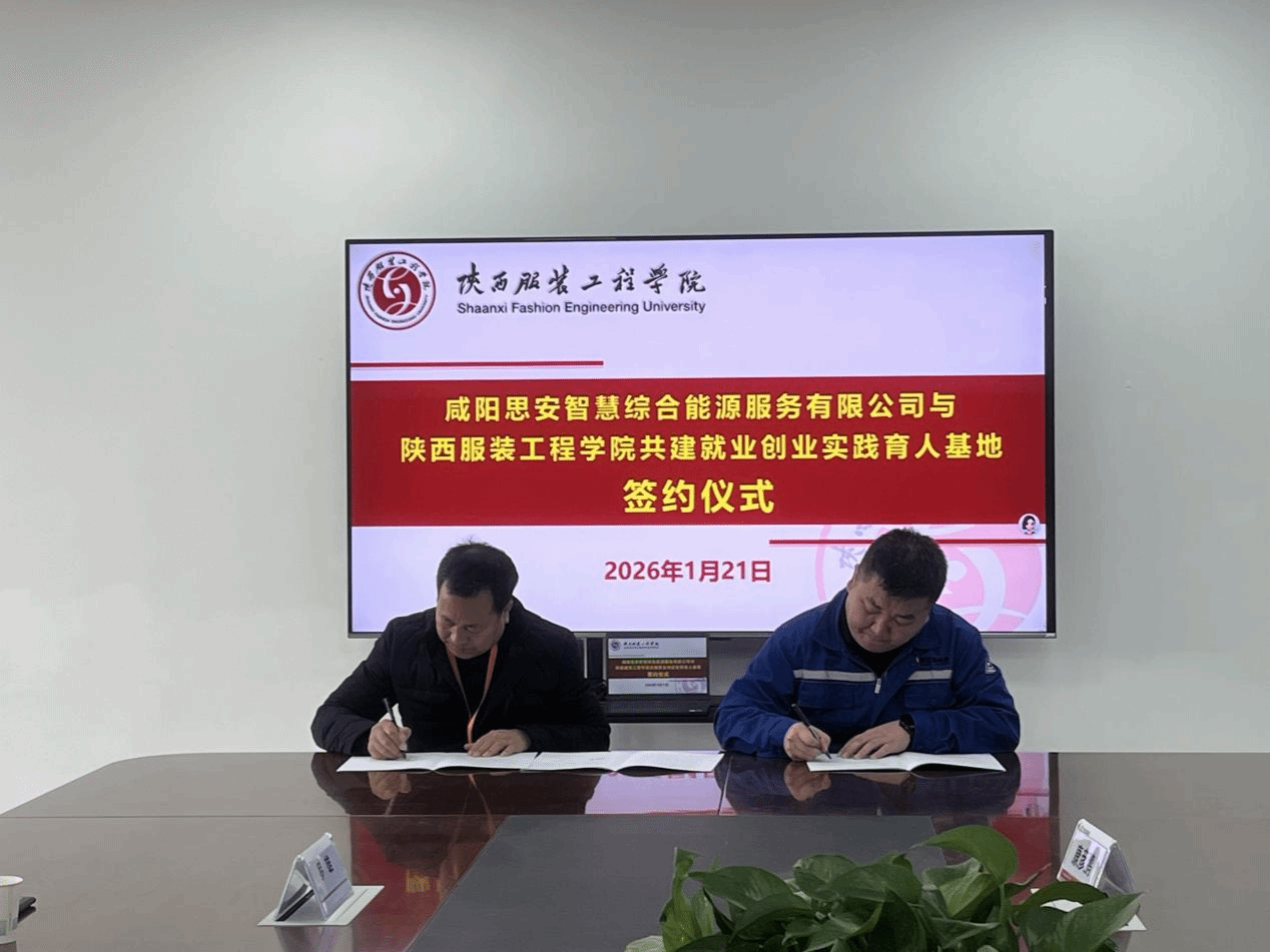 座谈会后,在双方代表的共同见证下,李水泉经理与咸阳思安智慧综合能源服务有限公司负责人正式签署《就业创业实践育人基地共建协议》。此次签约标志着双方合作进入实质性推进阶段,为公司拓宽就业渠道、创新育人模式提供了有力支撑,也为企业储备高素质专业人才、增强核心竞争力注入了新动能。