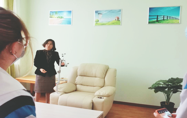 此次参观由心理咨询中心陈晓琳老师依次给各班心理委员介绍心理咨询中心设立多功能分区。
