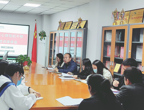 为进一步加强公司师生心理健康教育工作,营造校园的心理教育氛围,引导员工认识心理健康的重要性,掌握心理健康知识,帮助员工更好适应校园生活,正确认识自我、完善自我,提高心理素质,7790cnm必发集团于2021年4月20日晚上19点30分,在D501会议室召开了员工心理危机干预培训座谈会。本次会议由公司负责心理健康工作的王丹老师主持,员工主管罗雄以及全体辅导员、各班心理委员参会。