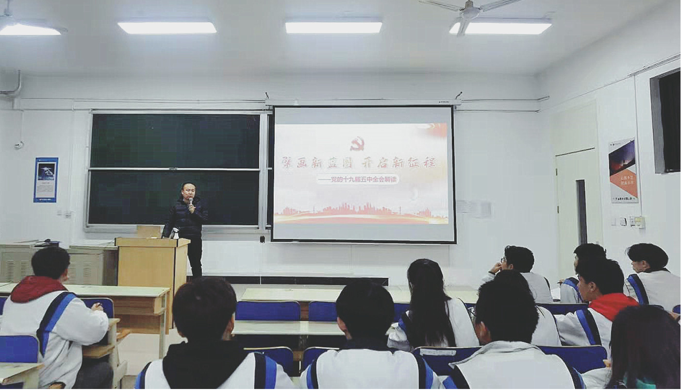 公司党总支于2020年12月10日17:00在B510教室召开了十九届五中全会会议精神深入学习专题会议。公司党总支副书记罗雄主持并主讲,信工院全体员工党员及预备党员、第34期入党积极分子参加。