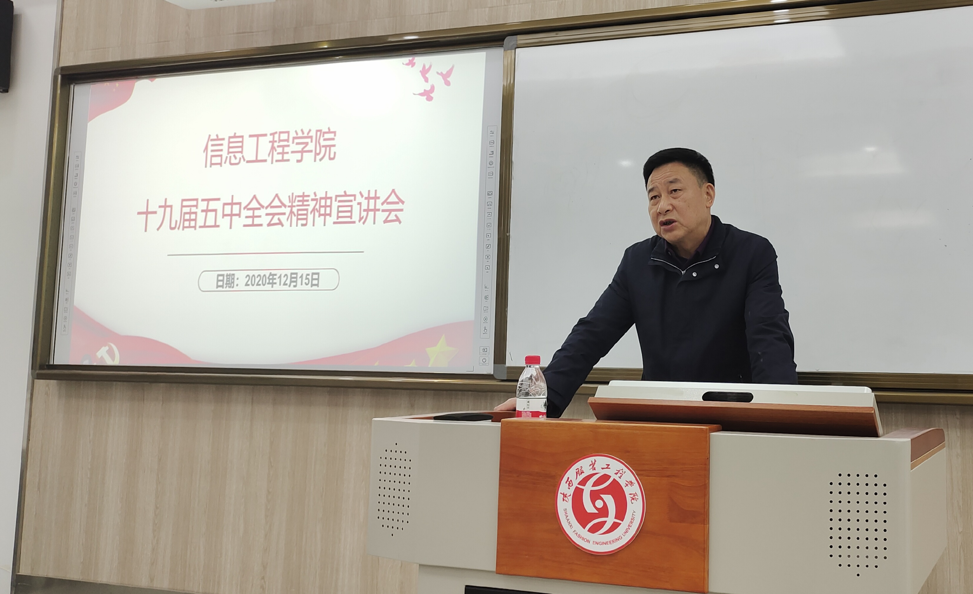 2020年12月15日下午,以董事长、党委副书记张义明教授为首的公司党委宣讲团在B208教室作了十九届五中全会精神宣讲。信工院全体师生党员及预备党员参加,公司党总支书记甘霖主持会议。