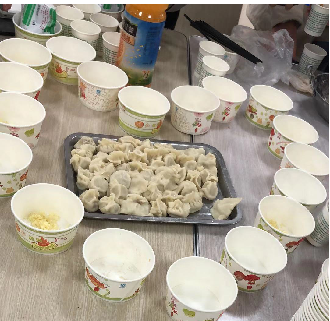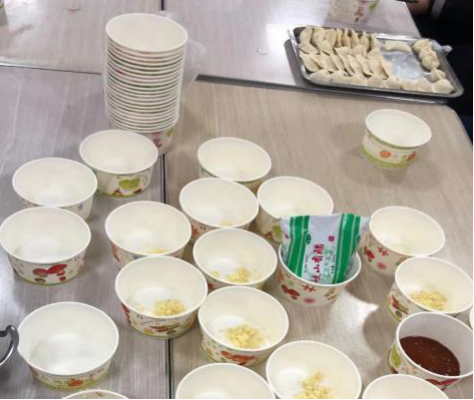 下午,员工会纪检部、秘书部、文艺部等部门的二十余人在餐厅二楼借用了场地,拿着事先准备好的饺子食材开始行动。大家分工明确,合作默契,有条不紊的拿皮包馅,一个个形状各异,玲珑别致的饺子在大家手中诞生。热气腾腾的饺子在一片欢声笑语中出锅,同学们围坐在一起,其乐融融。活动在友爱温馨的氛围中结束。