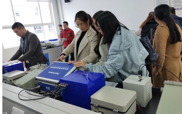 会议第三部分由各系分小组进行讨论。电子信息系、计算机科学系、机械工程系以及建筑工程系的四位系主任,在教学秘书党小娟的牵头下,带领教师到相关专业的主要实验室做了实验教学方法探讨。各系对前期实验开展情况进行了总结,各自提出了不足,并对如何改善不足,不断提高实验教学水平做了深入讨论。