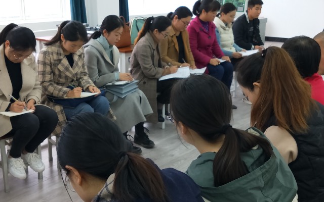 (图3:与会教师认真听取会议内容)
