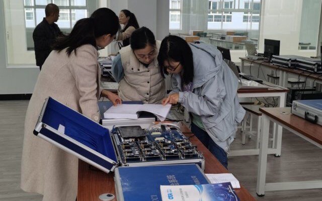 会议第二部分是实验室深度走访。甘副经理组织参会教师,在实验室讲解员胡悦老师的带领下,走访了实验楼三楼的大学物理实验室、计算机组成原理实验室、数/模电路实验室、计算机网络实验室、综合布线实验室、电工实验室以及大数据实验室等。