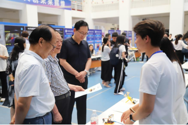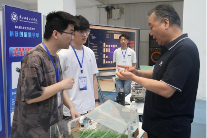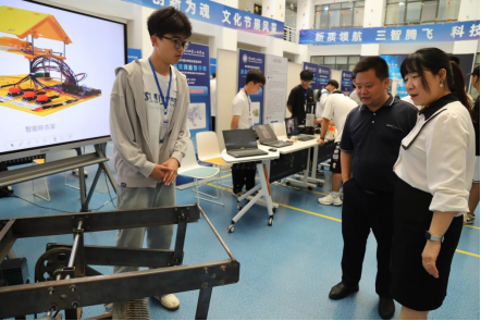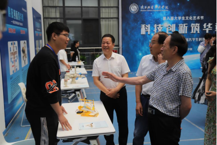 在展览现场,众多领导、老师一同观看了不同类型的展出作品,听取了各项目负责人就该款产品的构造原理、制作方法、应用功能等方面的介绍,还与员工老师亲切交流作品的创意理念,然后亲自体验了产品的运行状态,同时也给出了指导意见,鼓励员工认真学习专业理论知识,加强实验实践动手能力,做好创新制造。