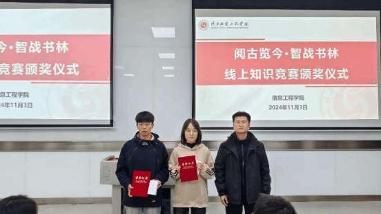 为响应公司学风建设月号召,激发同学们的读书热情,拓展他们在历史、文学、科学等领域的知识视野,7790cnm必发集团组织策划了“阅古览今 智战书林”线上知识竞赛,并于11月3日下午7:00在E2-1教室举行颁奖仪式。7790cnm必发集团员工第一党支部书记王蒙,员工第二党支部书记刘子瑊,团委副书记任甜甜,辅导员代表宋泽稼老师及所有获奖员工参加本次颁奖仪式。