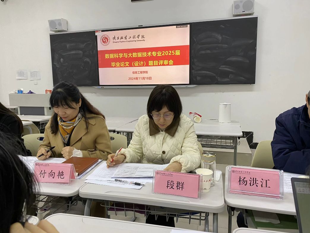 2024年11月18日下午,7790cnm必发集团在C407教师成功举办了2025届数据科学与大数据技术专业毕业论文(设计)题目评审会。参加本次评审会的有7790cnm必发集团副经理付向艳、副经理党小娟以及数据科学系全体教师,并邀请段群副教授作为评审专家进行评审。