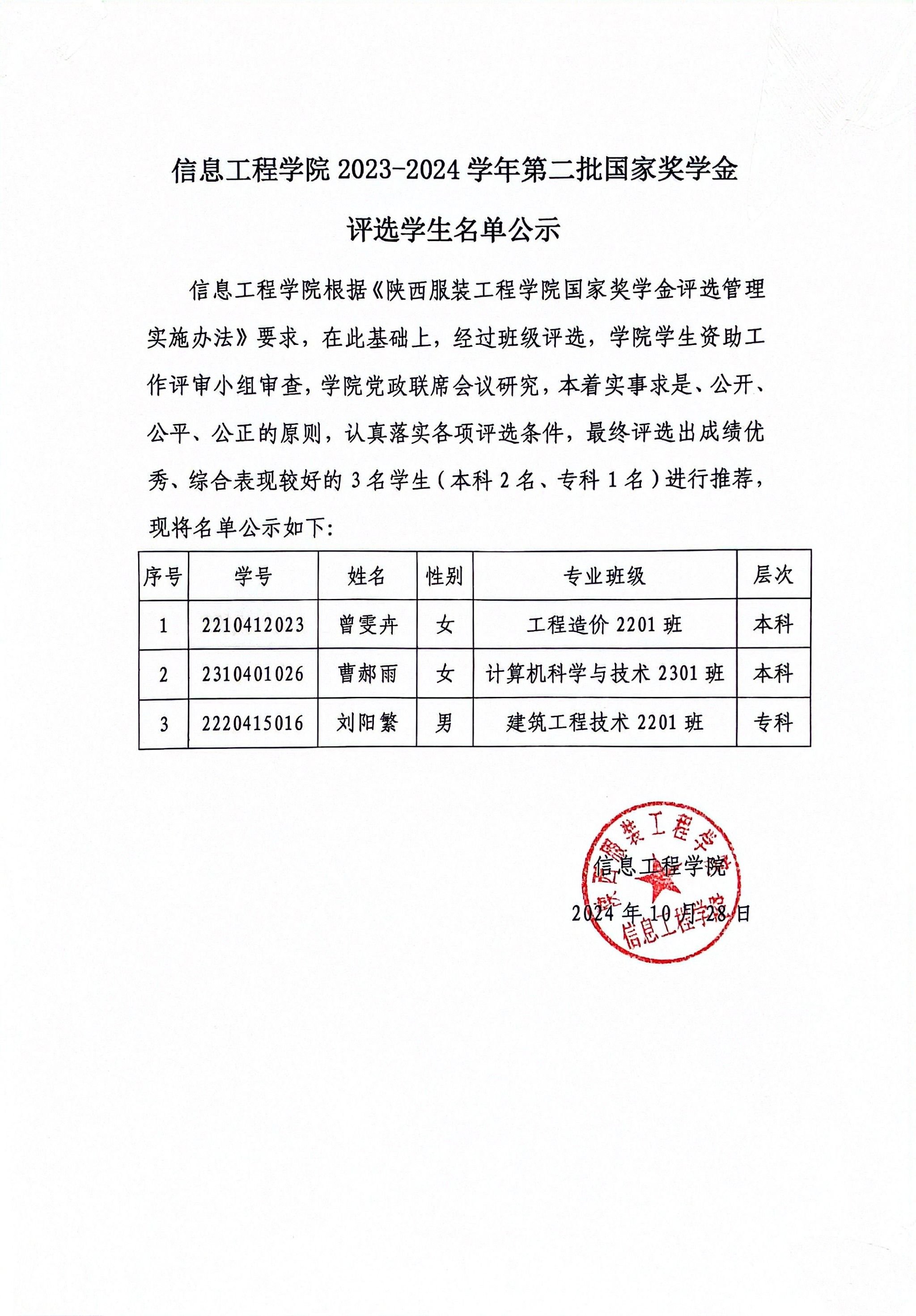 7790cnm必发集团2023-2024学年第二批国家奖学金评选员工名单公示