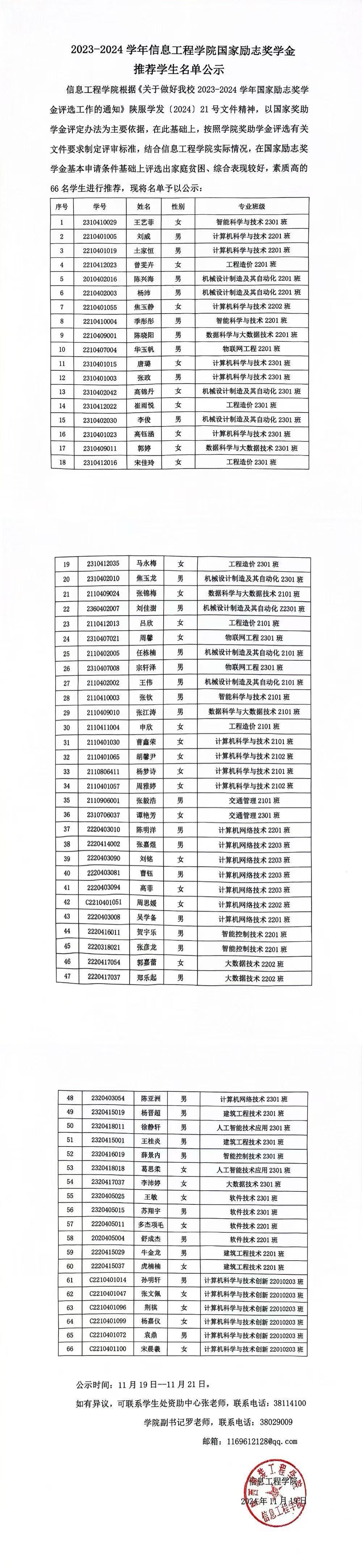 2023-2024学年7790cnm必发集团国家励志奖学金推荐员工名单公示