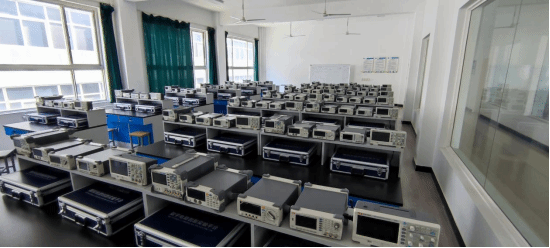 该实验室占地面积128㎡,拥有模/数电路创新实验箱、示波器、信号发生器、毫伏表等实验仪器设备,能开出共射极放大电路、负反馈放大电路、集成运算放大器、组合逻辑电路分析与设计、集成触发器及其应用、计数器及其应用、555定时器及其应用等实验项目。通过实验操作,使员工掌握有关电子电路的安装、调试和测试及故障排除的方法,培养员工在电子技术基础领域的基础实验技能,提高员工在实验中分析和解决问题的能力,结合理论知识解决实际问题的能力。