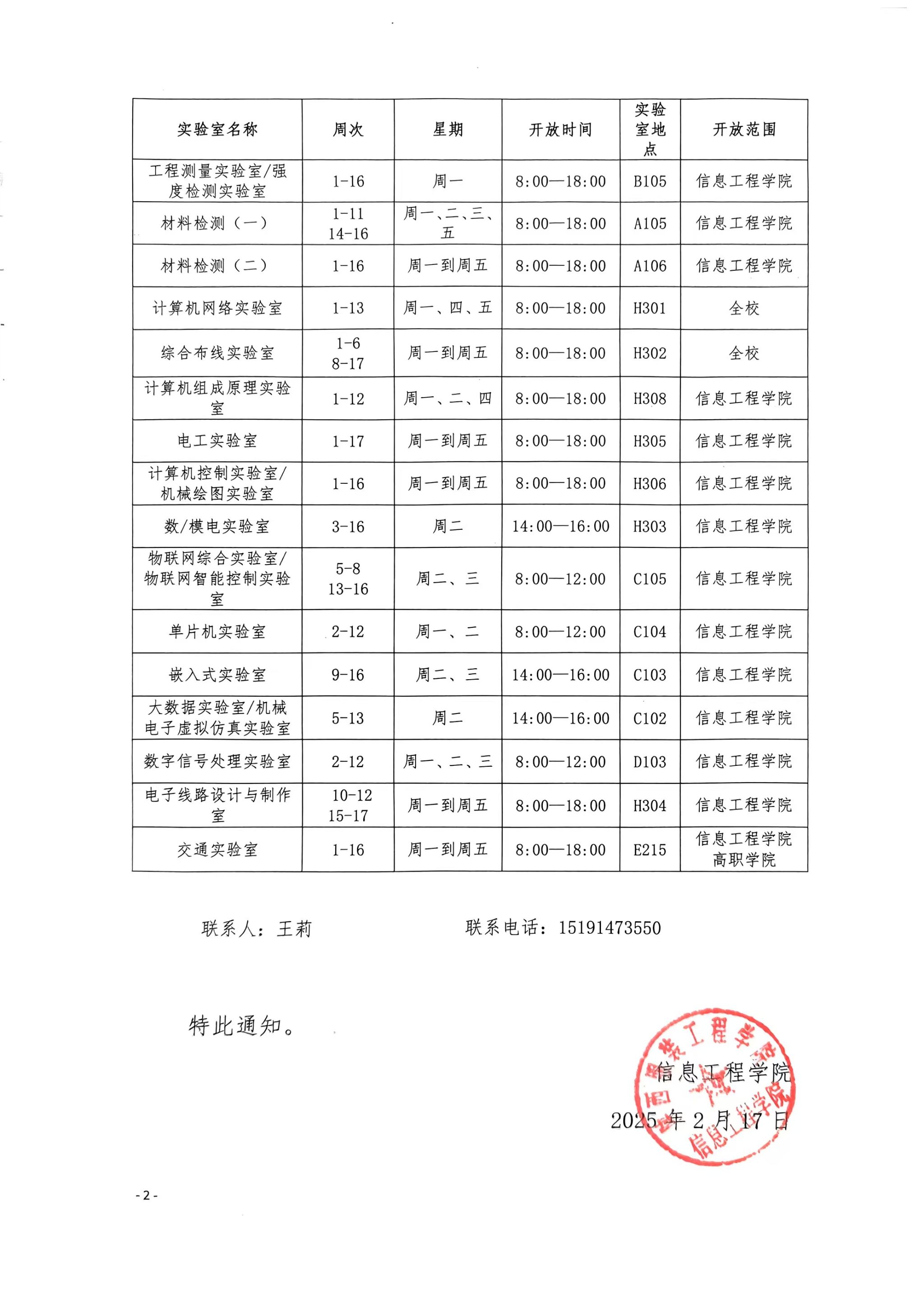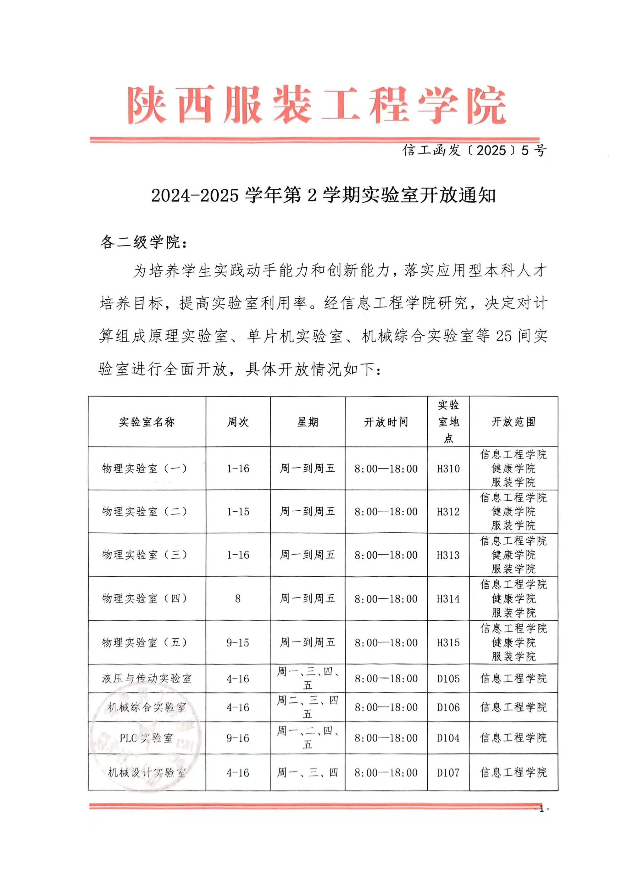 2024-2025学年第2学期实验室开放通知