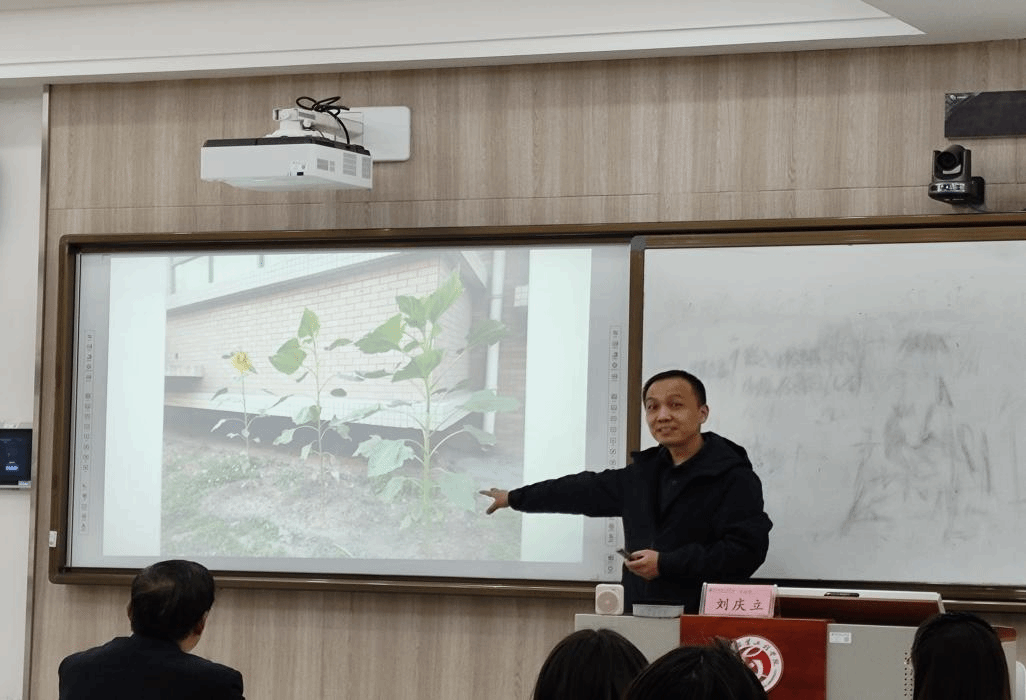 最后,刘副教授展示低垂花头的向日葵,寓意教师应多关注员工,将员工视为教育的根基。讲座最后30分钟为互动环节,教师们就授课经验、希沃绘图工具与PPT相结合应用等展开热烈讨论。