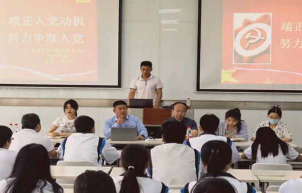 与此同时,甘霖书记为同学们指明了树立正确入党动机的具体方法:首先,努力学习思想政治理论课程,自觉学习党的章程,学习党的重大会议精神,提高自己的政治理论素养。其次,做人民利益的坚决拥护者,服务人民,服务师生群众。最后,要在工作、学习和社会生活中发挥先锋模范作用,从点滴小事做起,脚踏实地的向党组织靠拢。