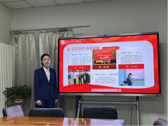 本次答辩采用PPT汇报的形式,拟发展对象们需在规定时间内对自己的入党动机、对党的认识、个人学习工作生活表现做出详细阐述。拟发展对象展示完毕后,在场老师结合汇报内容进行提问,包括对党的先进性的理解、入党积极分子期间的收获与感悟等,促使拟发展对象们加强理论学习,进一步端正入党动机,以更严格的标准要求自己。