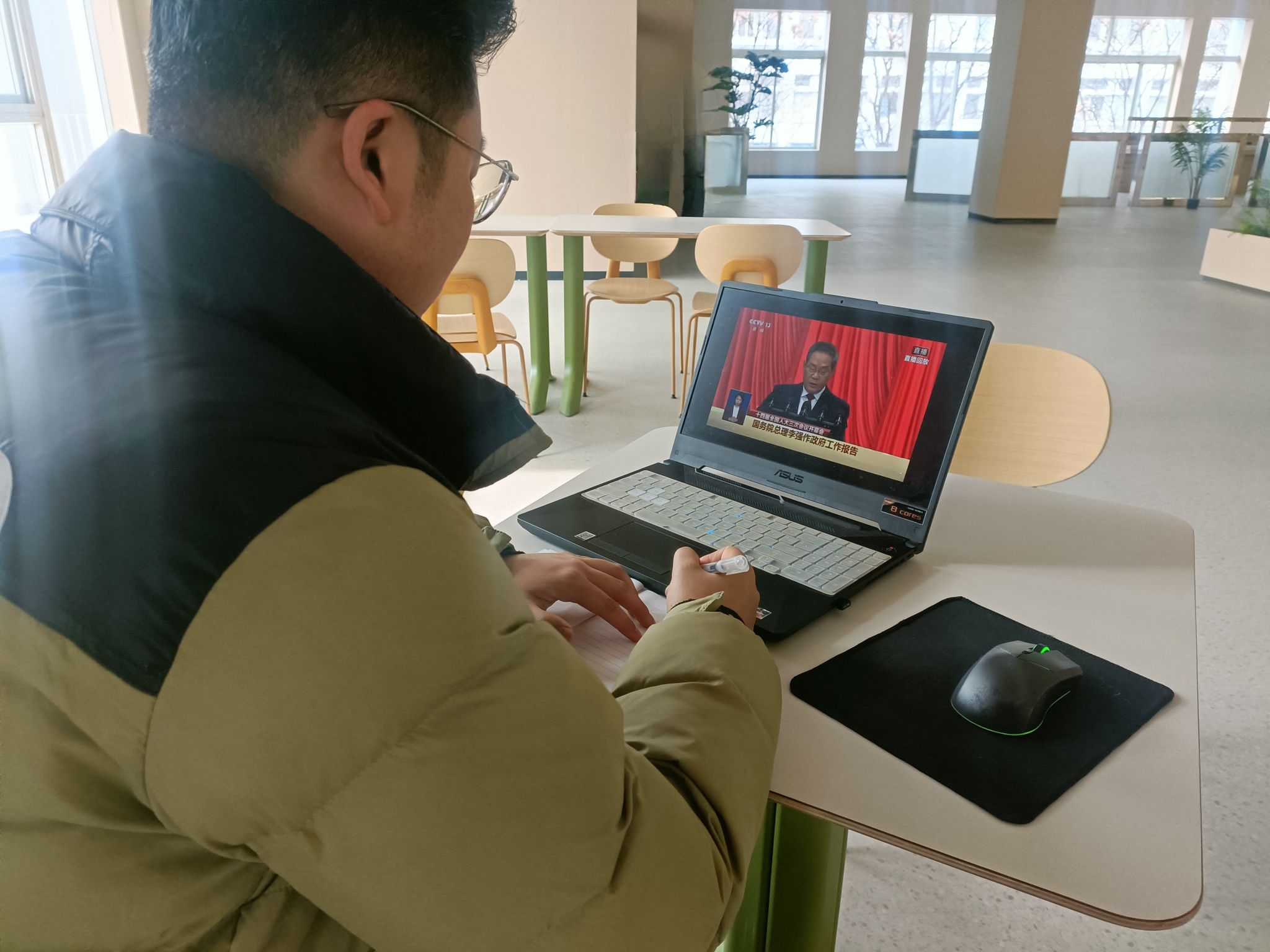 当日上午,在校员工党员统一安排观看两会的召开。与此同时,在外实习的员工党员们也充分利用工作间隙,借助手机、电脑等设备,准时收看直播。尽管大家身处不同地点,但关注两会、心系国家发展的热情高度一致。