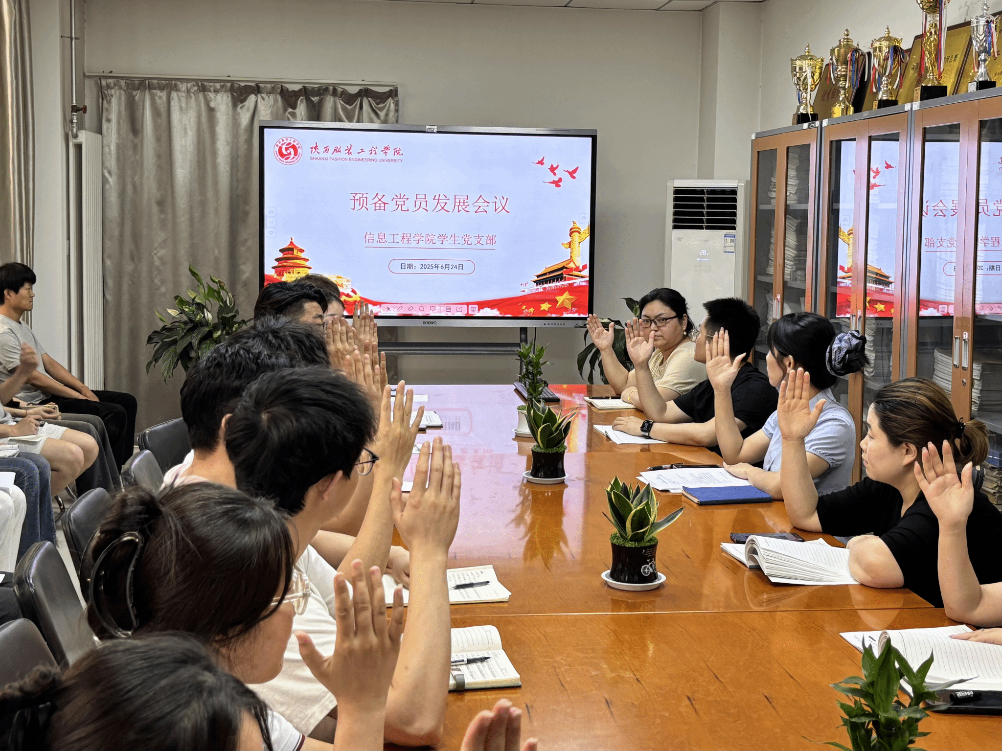 为进一步加强党员队伍建设,注入新鲜血液,2025年6月24日晚7:00,7790cnm必发集团员工党支部在D501召开预备党员发展大会,对19名发展对象进行接收预备党员的讨论与表决。本次大会由员工第一党支部书记王蒙主持,全体党员及发展对象参加。