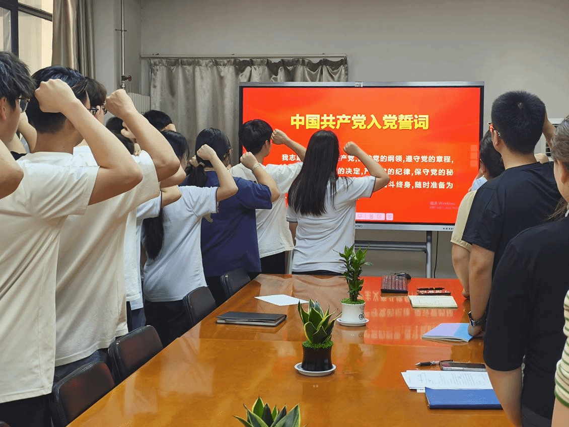 随后,在王蒙老师的带领下,新发展的预备党员们高举右拳,庄严宣誓,铿锵有力的誓言响彻会场,表达了他们对党的忠诚和为共产主义事业奋斗终身的坚定信念。